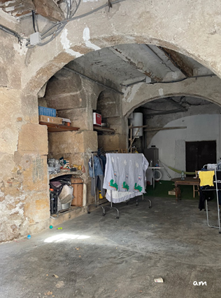 Situé au rez-de-chaussée de la maison faisant angle avec la rue de Verdun et la place Accarisio, ce moulin sert aujourd'hui de remise. Dans la belle salle coupée de deux voûtes en arceau on voit encore les deux chapelles faites de grandes pierres taillées. Le mur de force est englobé à l'étage et a une épaisseur d'au moins 1,80 m. |