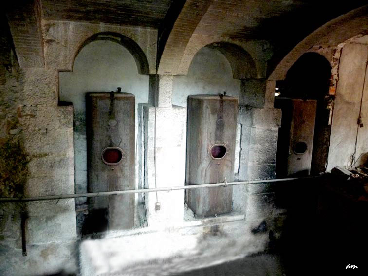 Les chapelles du moulin de la Conque avec à l'intérieur des cuves à vin suite à la transformation du moulin en cave.